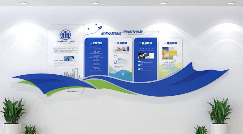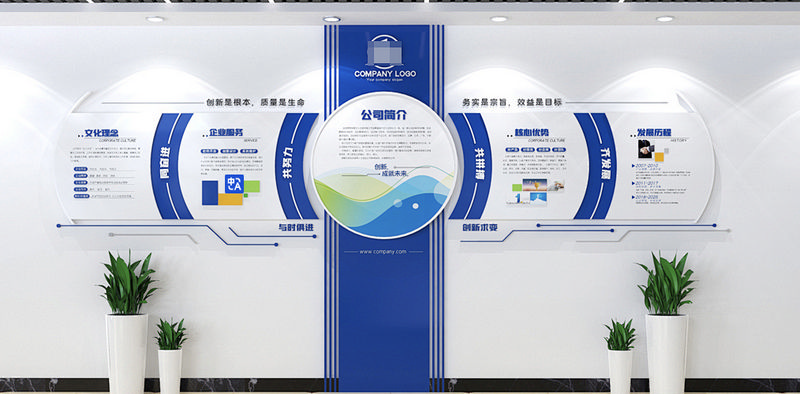 藍(lán)色創(chuàng)意大氣企業(yè)公司介紹宣傳欄文化墻展廳形象墻設(shè)計(jì)